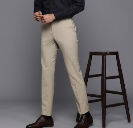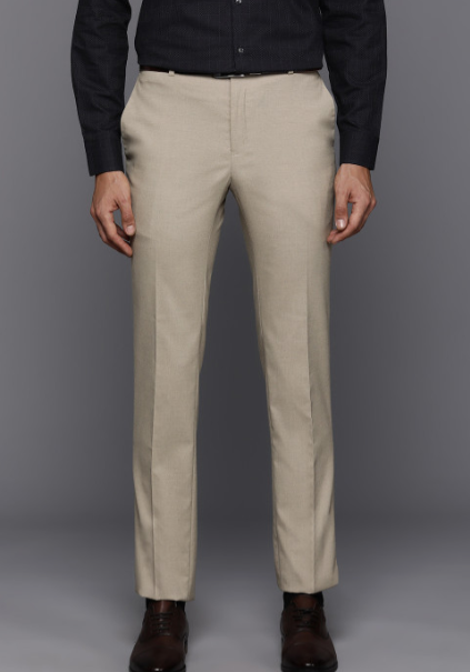 Men Cream Solid TrousersMen Cream Solid Trousers